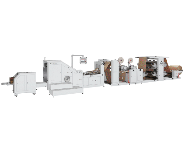 This machine froming the roll paper to the Spray adhesive, Paste the film, the top of the glue, into a tube, cut bags, folding bottom, paste the finished product bag finished once. The new model is more convenient, more efficient and more stable, fast food bags, bread bags, dried fruit bags, shopping bags, and so the ideal equipment for environmental protection paper bags.